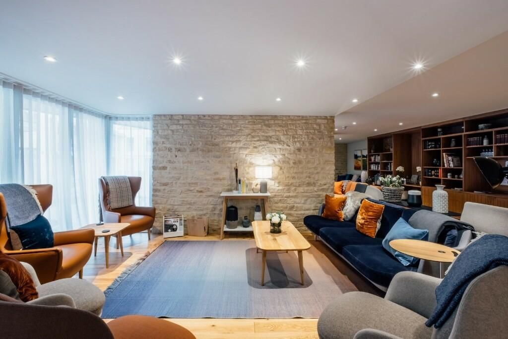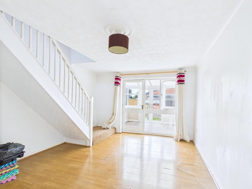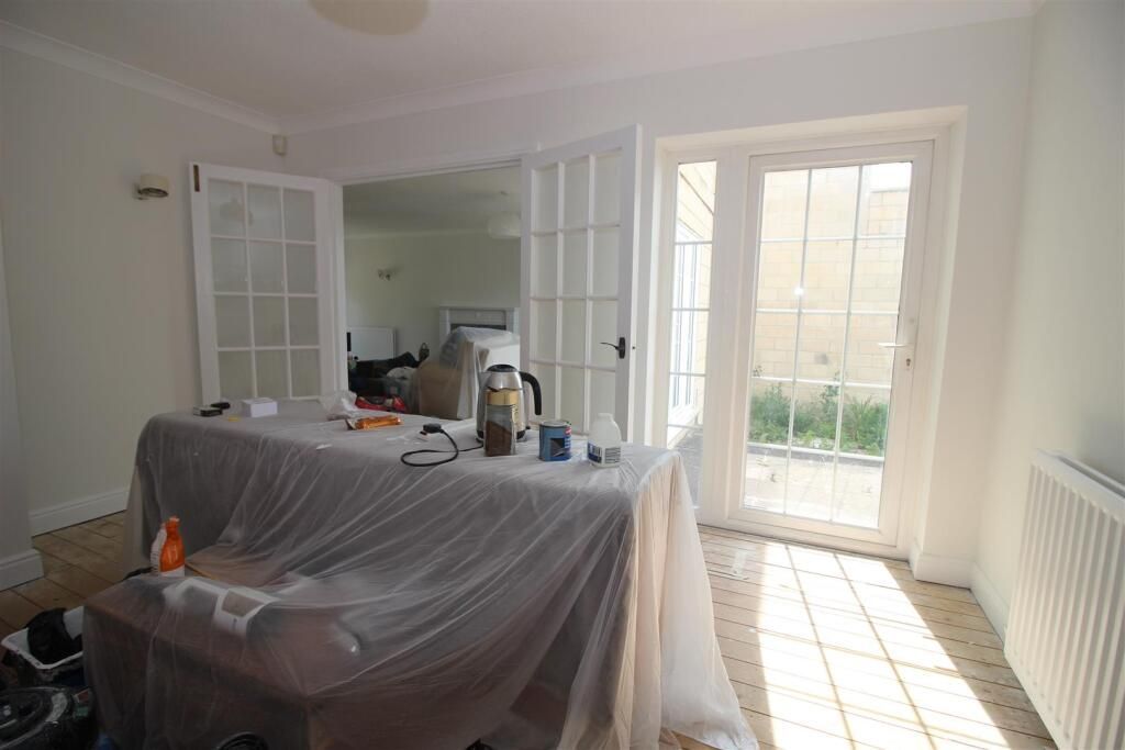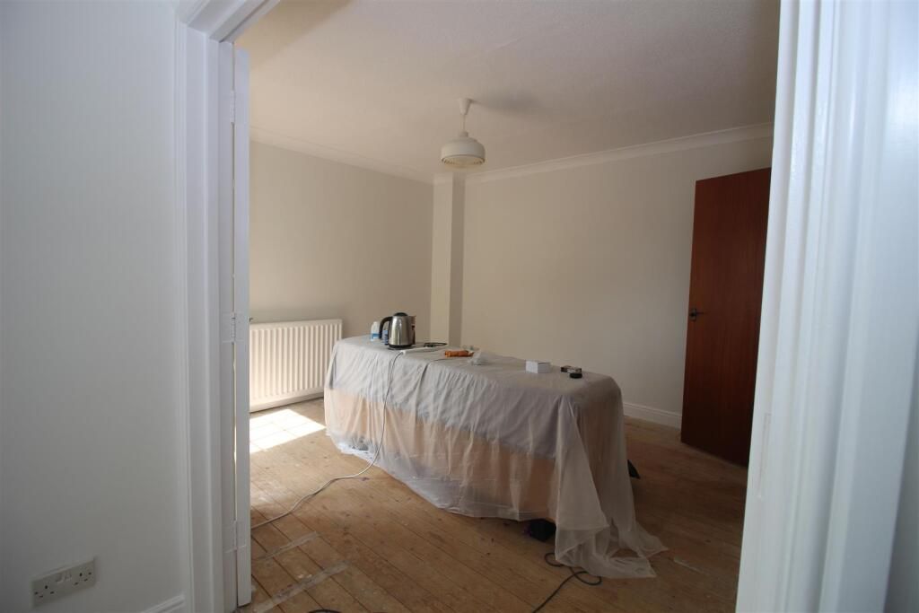 A spacious dual function room featuring a bay window to the front, wooden f...