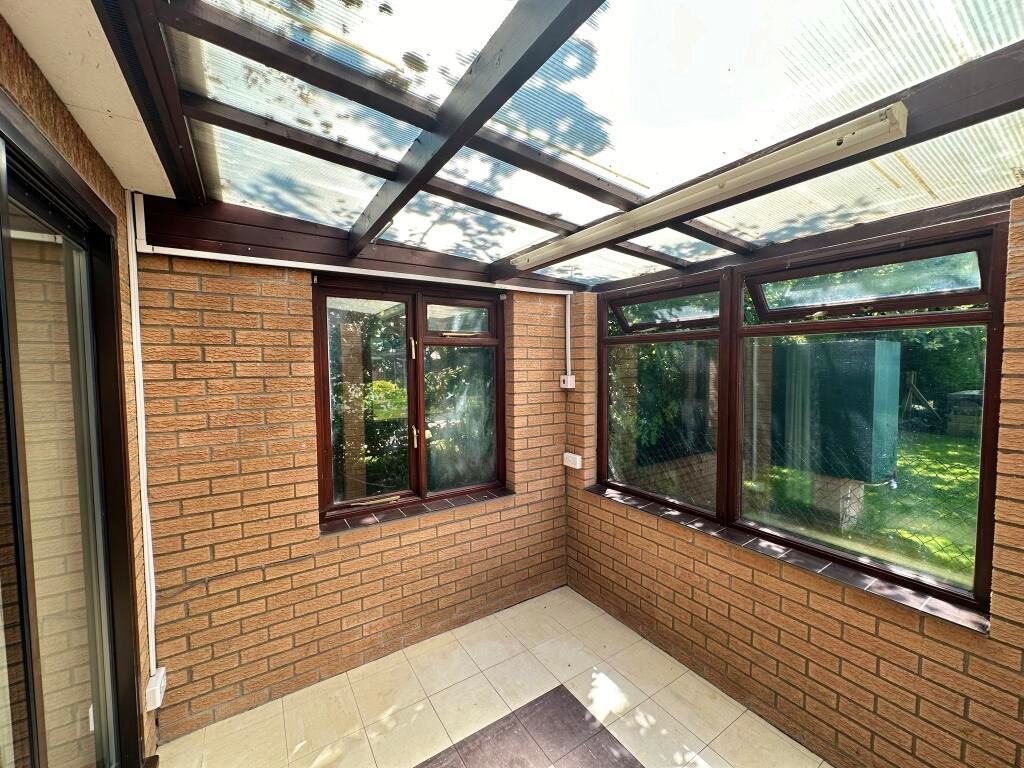 Tile effect flooring with door to rear garden and conjoining on either end to the two conservatories.