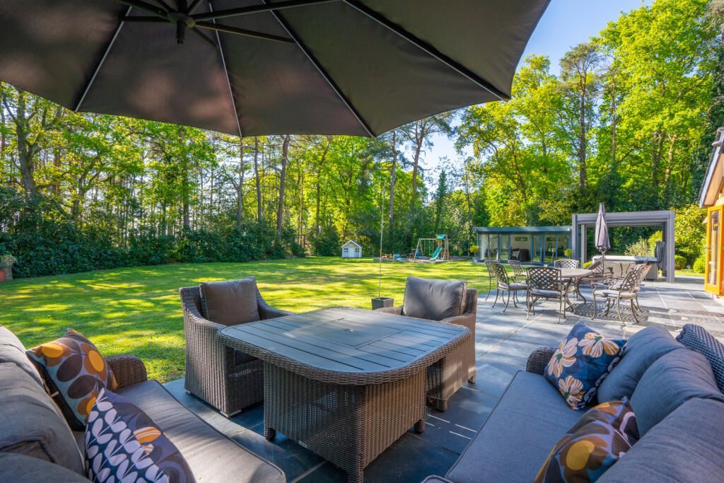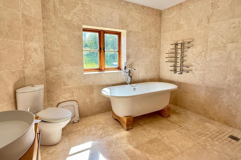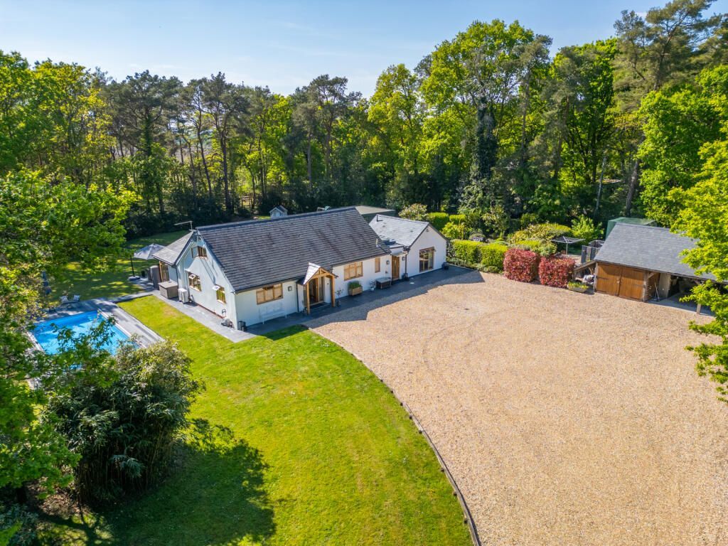 Approached via a long gravel driveway through a five bar gate, the home sits elevated and well back from the road, enjoying uninterrupted views across the open forest, with ample parking, garaging ...