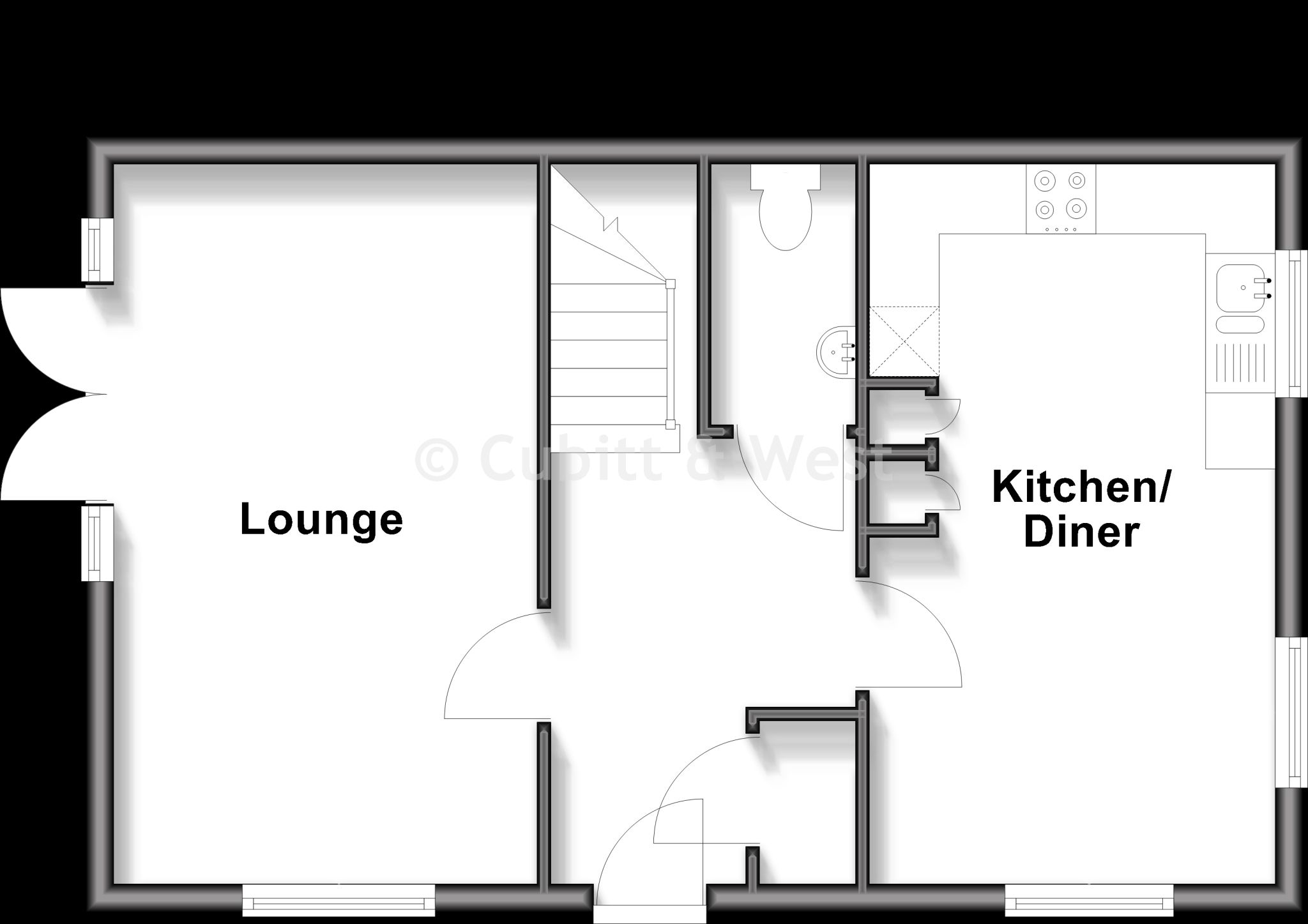 Contemporary Design It boasts full front windows and an open plan layout, providing a spacious feel.