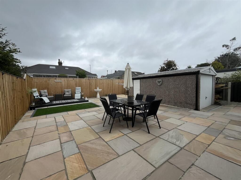 To the front, a Driveway provides off street parking for a couple of vehicles, bordered by a neat paved garden filled with well maintained shru...
