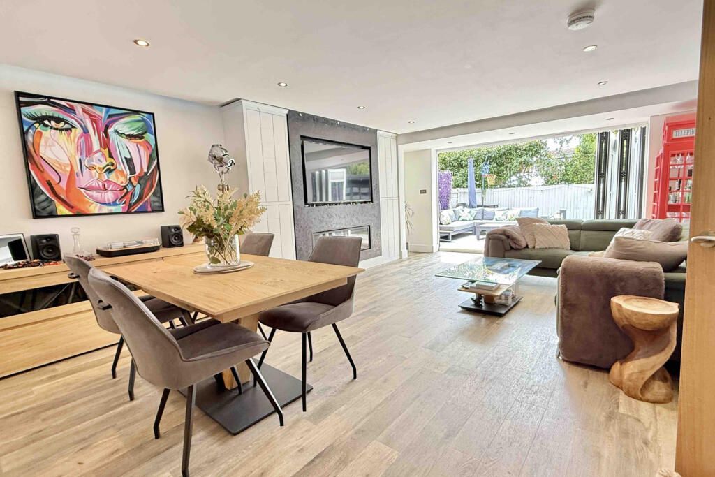 The latest improvement is the creation of a simply stunning kitchen living space. It enjoys a dual aspect with bi fold doors that open out into the garden. The living area has a stunning feature wall fireplace and driftwood style flooring extending through to the dining & kitchen areas.
