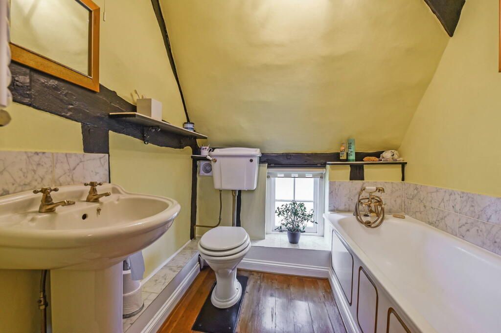 Once on the first floor, the accommodation is equally characterful with 4 bedrooms in total, 3 of which are spacious doubles and there is one single bedroom. The bedrooms are serviced by a family bathroom and a separate shower room. There is also plenty of eaves storage throughout the first floor.