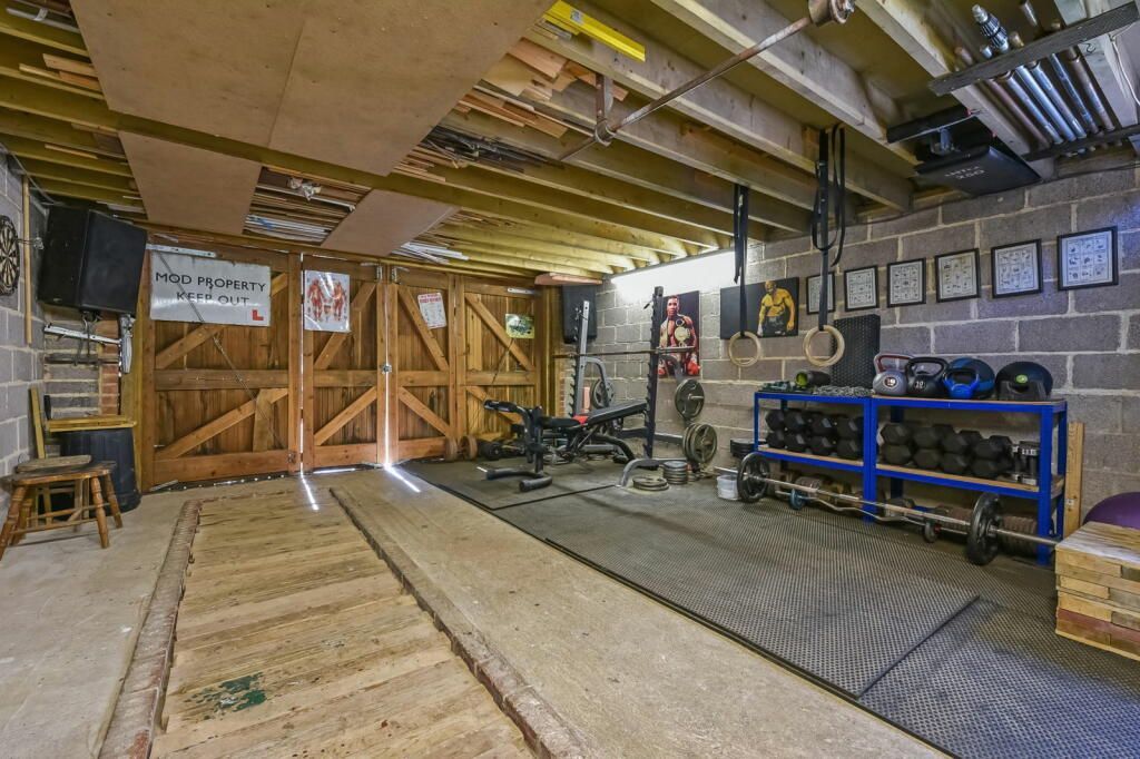 The property benefits further from a spacious two story double garage with a large roof space and, for car enthusiasts, the added benefit of an inspection pit. The garage is currently used for storage, a workshop and home gym.