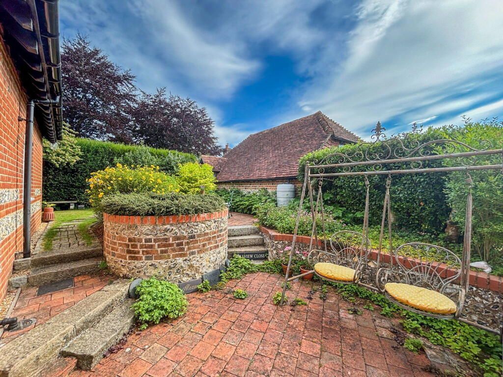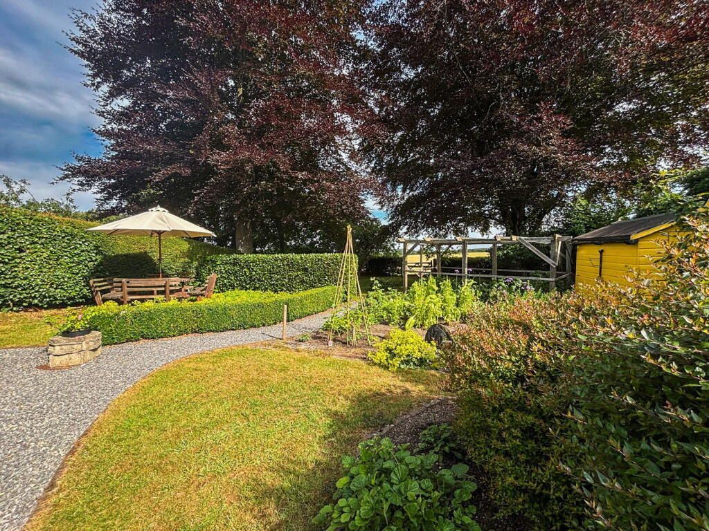 Outside, the enclosed garden continues to impress, with a well presented lawn, a variety of flower filled borders and mature trees and shrubs providing a haven of peace and tranquility. There is a patio area by the house with plenty of space for a table and chairs, perfect for alfresco dining. To the rear of the garden there is a further lawn with seating area and unrivalled far reaching rural views across fields and woodland.