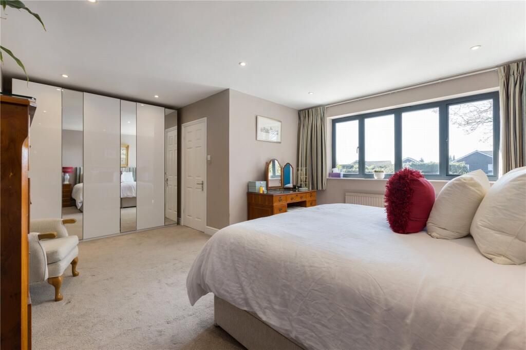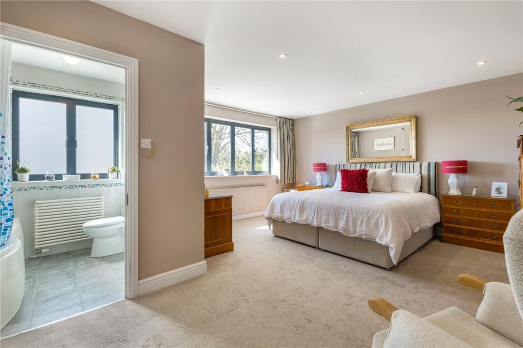 Arranged across the first floor are five well proportioned double bedrooms, including an impressive principal suite complete with luxurious en suite and elevated views over the mature gardens. The remaining bedrooms are served by a contemporary family bathroom, styled to an exceptional standard.