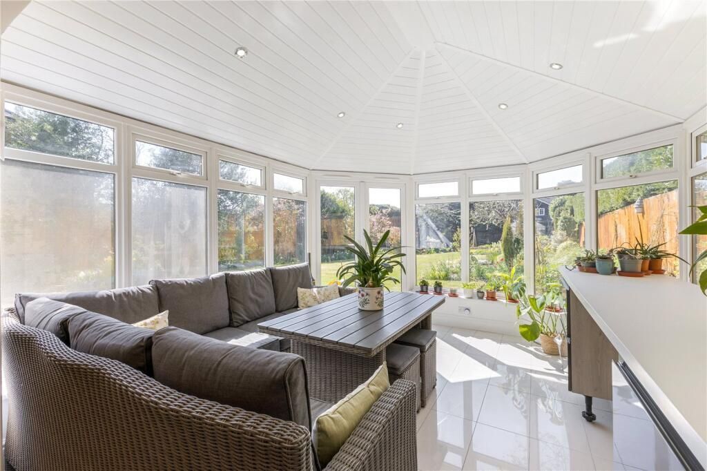 At the heart of the home lies a superbly designed kitchen, fitted with an extensive range of bespoke cabinetry and preparation areas. This space opens into a delightful breakfast room and conservatory, creating an inviting setting for everyday living and informal dining. A refitted utility room, with convenient garden access, complements the kitchen perfectly.
