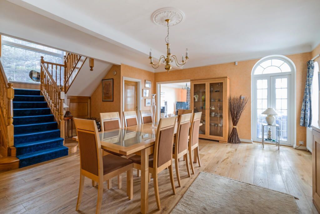 The property is traditional in style with large rooms, high ceilings and picture windows to appreciate the views. The front door brings you through to an impressive dining hall with sweeping staircase up to the second floor. The kitchen opens into a large conservatory extension enjoying beautiful views across the water.