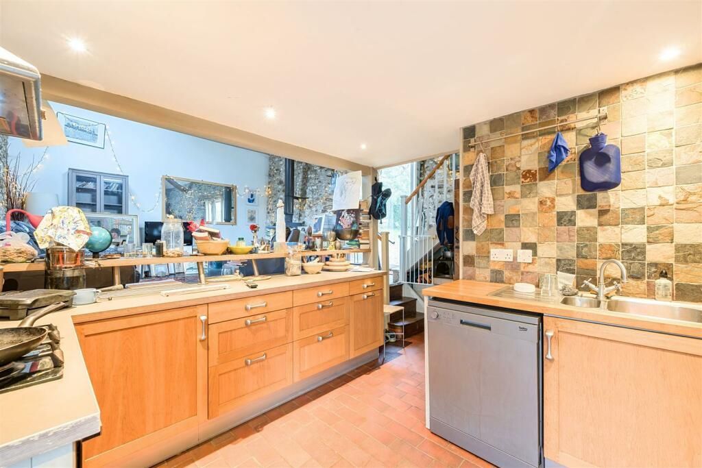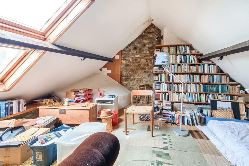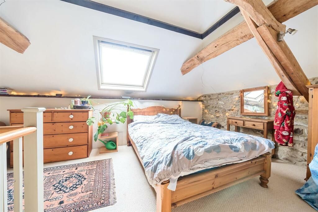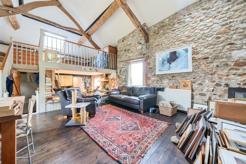 The Barn Adjoining the lower part of the farmhouse, the barn was converted in the late 70 s early 80 s into an annexe, subject to conditions and section 52 agreement so it wasn t separated from the house . The accommodation includes a fitted kitchen, impressive double height living spaces with a wood burner and exposed beams and stonework, there are doors to the rear garden and stairs to a mezzanine floor bedroom.