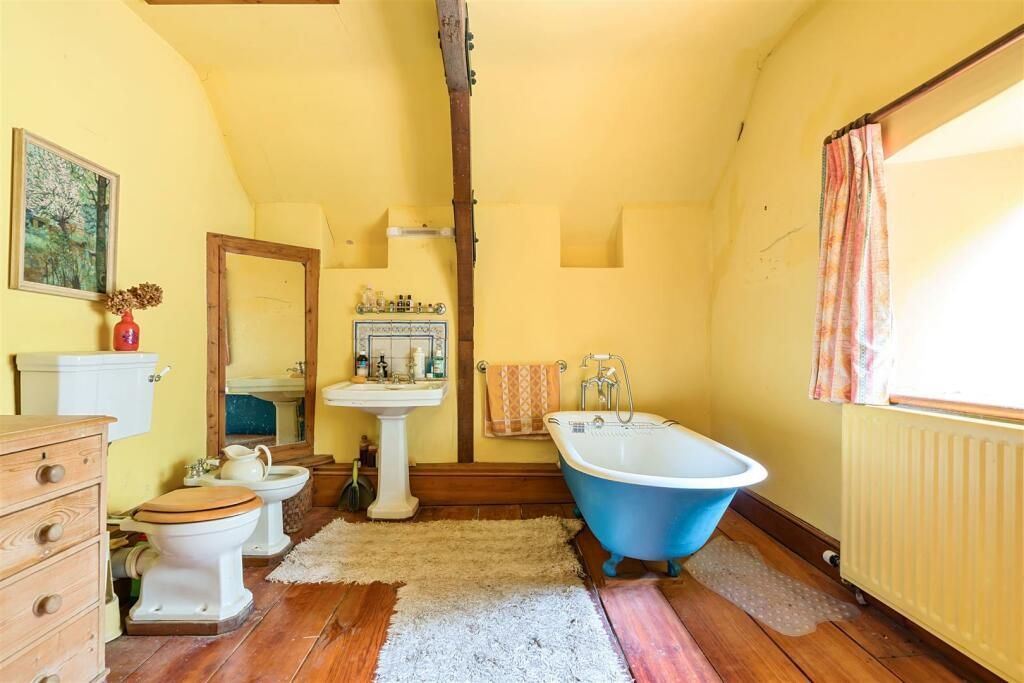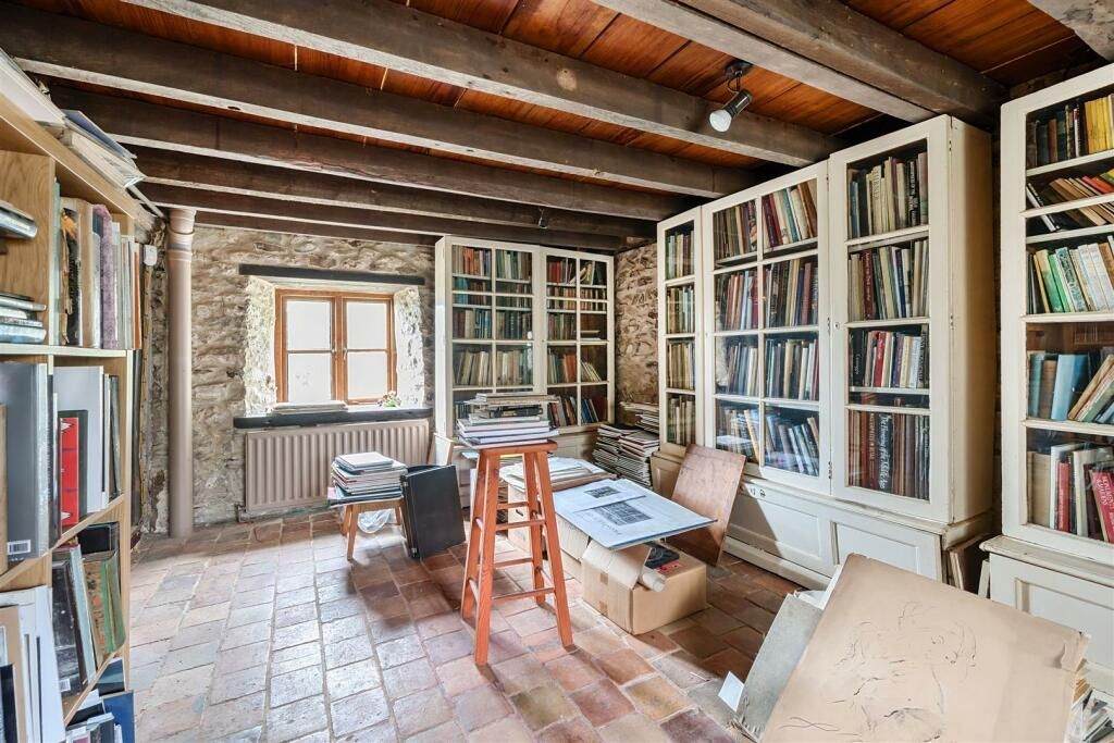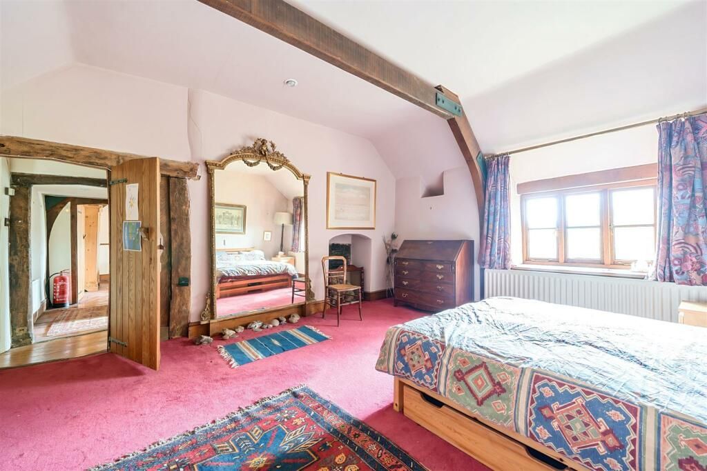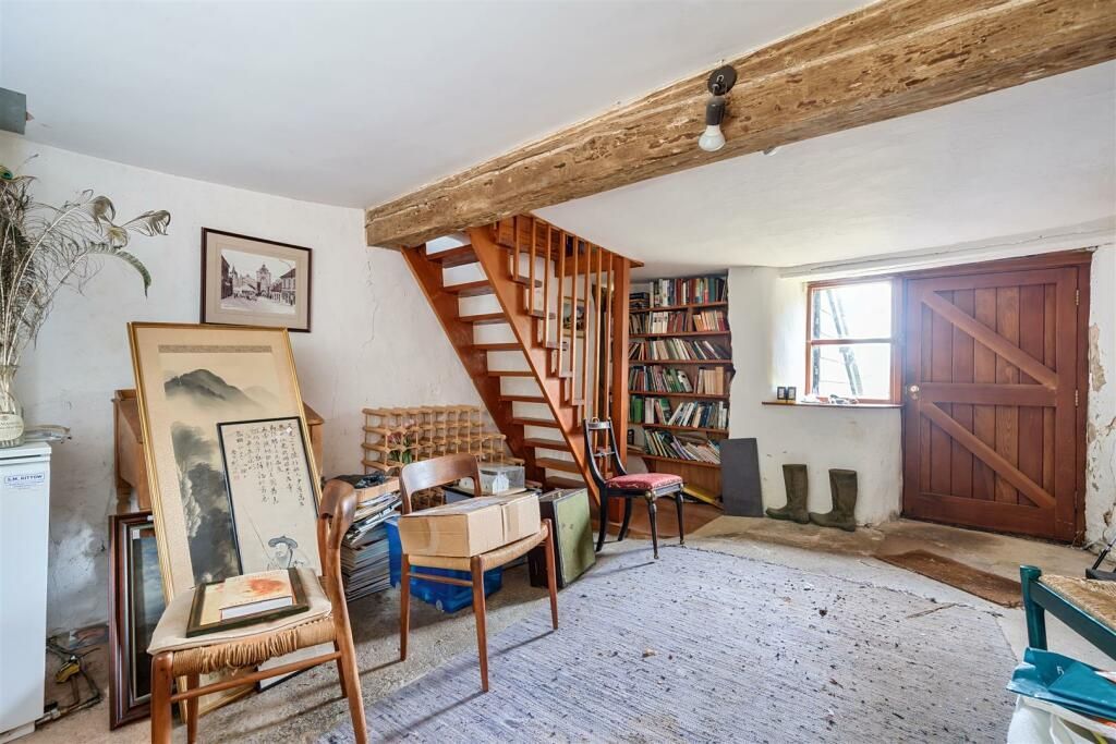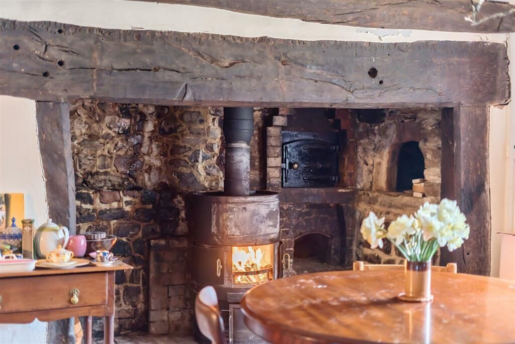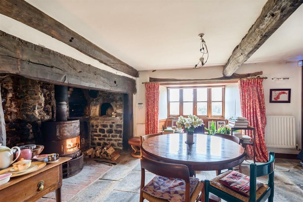 A cross passage hall leads into the main reception rooms, both of which have large fireplaces, the dining room fireplace featuring 3 bread ovens, a large bressummer beam and what is thought to be an old curing chamber. To the rear is a double aspect kitchen, at the far end of the house is the study library, and to the bottom is a large utility boot room, which was once the old dairy.