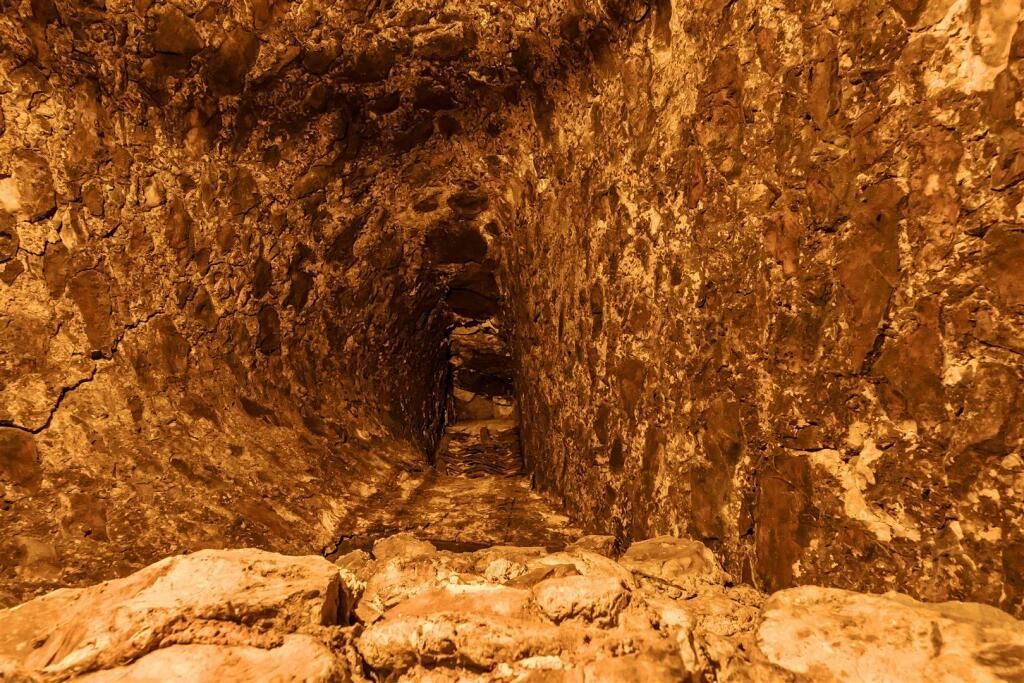 Above the utility boot room a steep staircase goes up to a studio mezzanine bedroom.