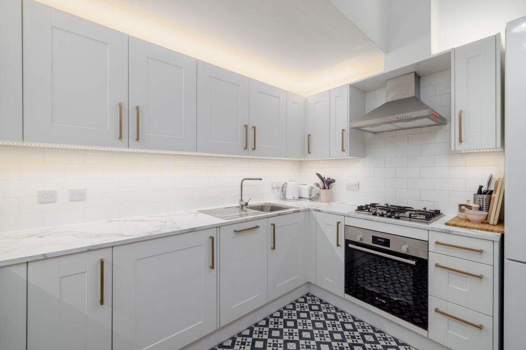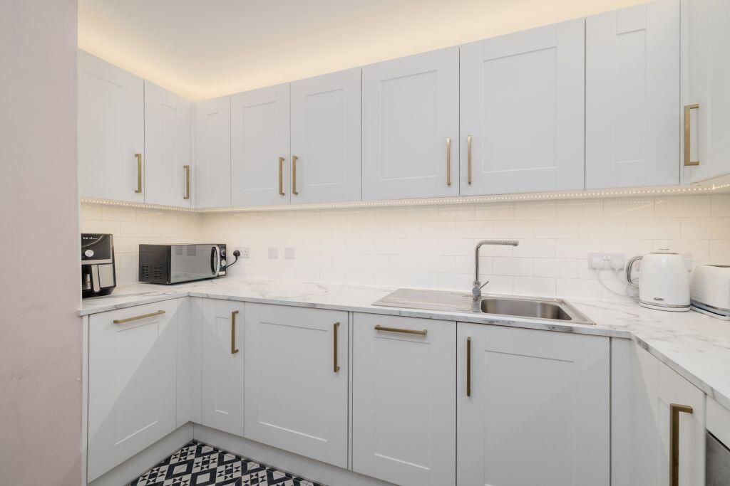 The accommodation comprises a spacious living dining room featuring a decorative fireplace, creating a perfect space for hosting friends and family. The recently installed kitchen is fitted with a stylish range of modern wall and floormounted units, a gas hob, electric oven, and integrated appliances included. There are two generous double bedrooms, with the master bedroom benefiting from large built in wardrobes providing excellent storage space. The stunning, fully tiled shower room is fitted with a two piece suite and a mains walk in shower featuring a rainwater shower head. Additionally, a utility room offers further practicality and could easily serve as a perfect home office space. The property further benefits from gas central heating and double glazing throughout, ensuring maximum comfort and efficiency, tiled flooring thorughout for easy maintanence and cleaning. Externally, there is a well maintained communal garden to the rear, and residents on street permit parking is readily available. Please note Light fittings in the living room not included in sale.