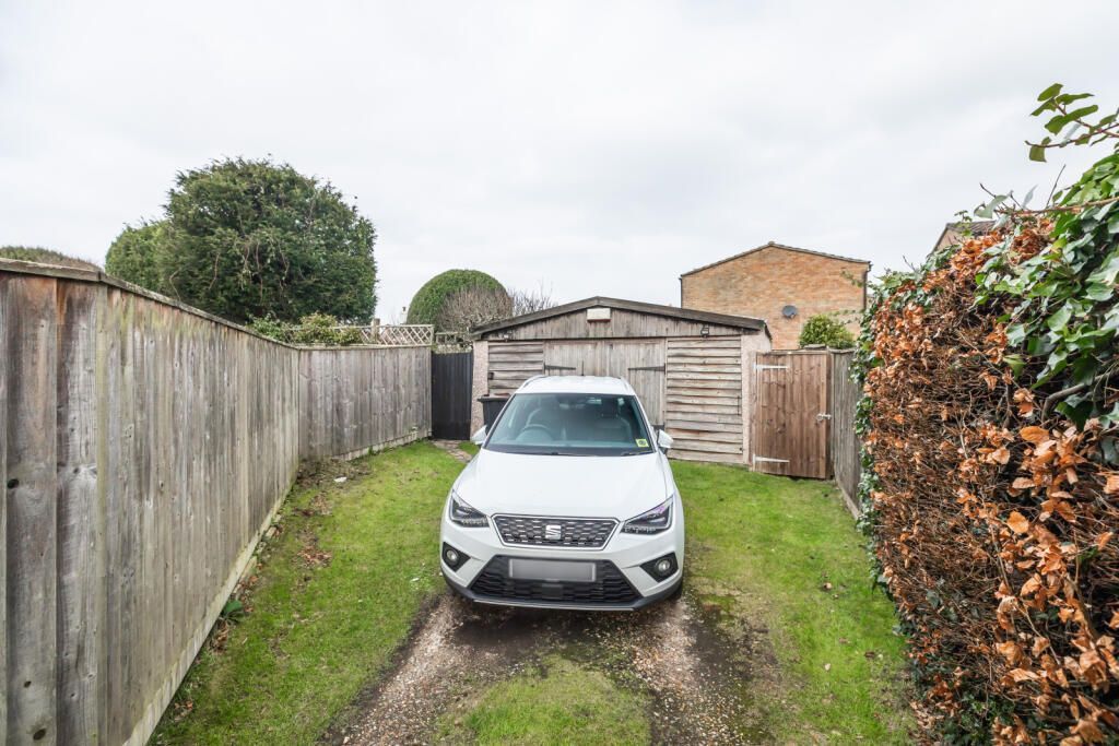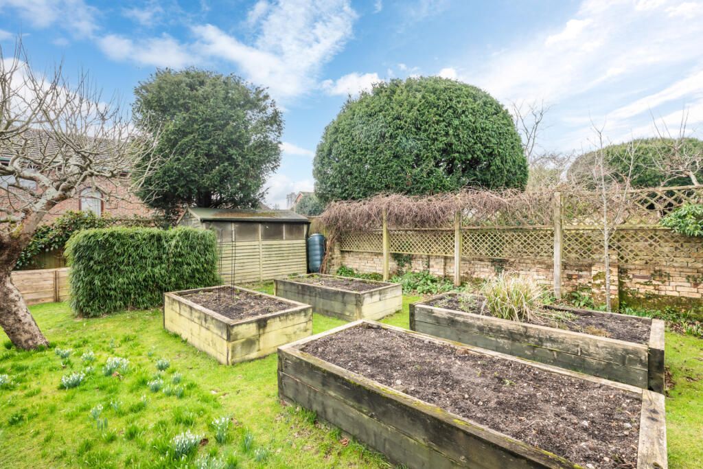 White Cottage enjoys a good size south facing rear garden which has been attractively laid out with areas to enjoy at different times of the day. They include a secluded paved courtyard area perfect for summer entertaining, a terrace, and a lawn that meanders through to the rear, with snowdrops and bluebells, a variety of shrubs and several fruit trees. Within the courtyard is a utility hobbies room with a range of units, sink, and plumbing for washer and space for dryer. At the rear of the garden is a vegetable plot with raised beds and a garden sheds From the lane at the rear a gated driveway leads to the large garage.