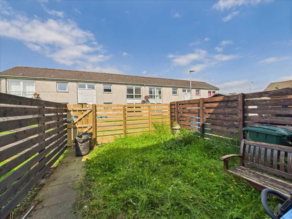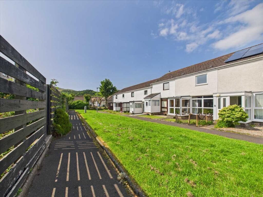 "37 Castleacres is a mid terraced home located in an established, peaceful residential area in Campbeltown. On the ground floor there is a generous lounge, with a walk in store cupboard. The kitchen has an integrated electric hob and oven, is plumbed for a washing machine and has space for a fridge, freezer, washing machine and tumble dryer. The kitchen also has a dining nook with table, benches and additional storage. The master bedroom benefits from fitted wardrobes, walk in wardrobe and an airing cupboard, there is also a good size second bedroom. On the landing there is an airing cupboard housing the water tank. The front and back garden are mostly set to lawn. The back garden is fully fenced and benefits from a garden store which is accessed externally.