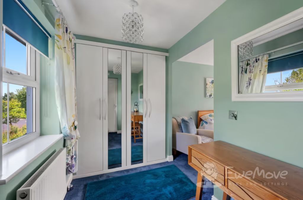 Across the landing, you ll find a bright and cheerful third bedroom currently used as a guest room and comfortably fits a king size bed.