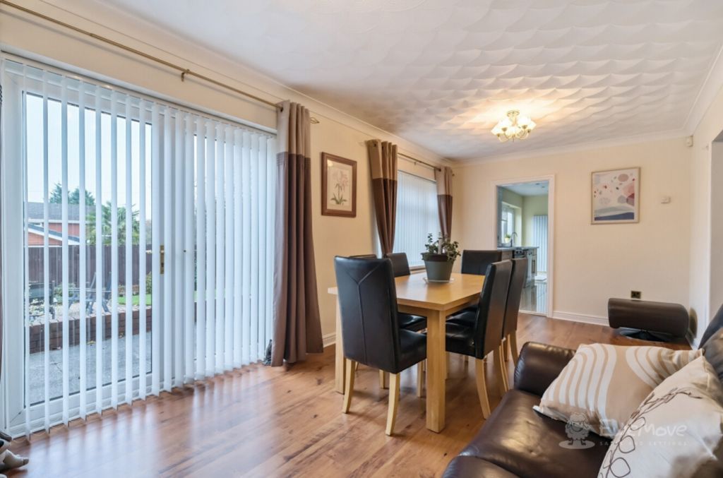Out from the dining area is your rear garden, which becomes an extension of your living space perfect for both relaxation and entertaining. The spacious, stone paved patio is ready for your outdoor furniture, whether you envision a cosy seating area or a dining table where you can savour meals al fresco.