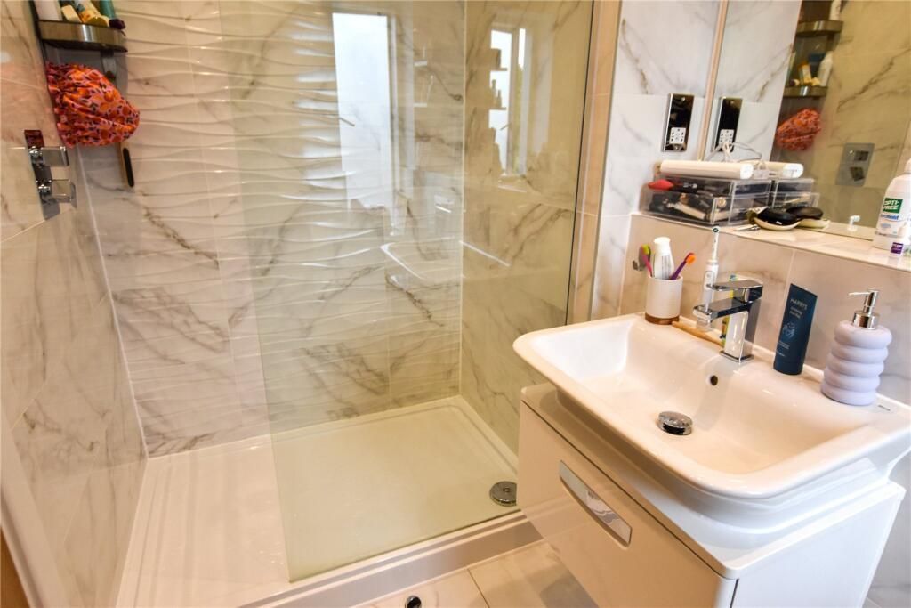 To the first floor there are three bedrooms, with bedroom one sitting to the front of the property and benefits from fitted wardrobes and en suite with large shower cubicle, wash hand basin, toilet, and large wall mounted mirror, and a frosted window to the front aspect. The two further bedrooms sit to the back of the property. There is also a large family bathroom, comprising of bath with handheld shower, wash basin, toilet and large wall mounted mirror. There is also a useful storage cupboard on the landing. Floors lead up to the second floor, revealing a further lounge, bedroom and shower room with large shower cubicle, wash basin and toilet. The lounge boasts large patio doors leading to the decked roof terrace, with glass balcony and seating area.