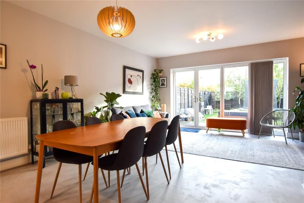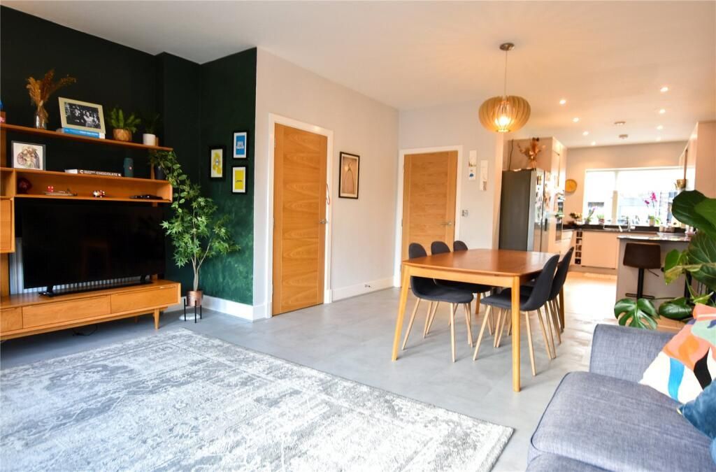 This stunning property extends to approx. 1426 sq ft and comprises of entrance hallway, W C with toilet and wash hand basin, open plan lounge diner and kitchen. The spacious open plan lounge diner sits to the rear aspect of the property, with a large storage cupboard, tiled flooring and large tri fold doors leading to the rear garden. The living dining room has ample space for free standing living dining room furniture. The kitchen has ample base and eye level units with breakfast bar with integrated microwave, double ovens, and induction hob with extractor over and washing machine, a breakfast bar offers a seating area for two bar stools and a window looks out to the front aspect of the property.