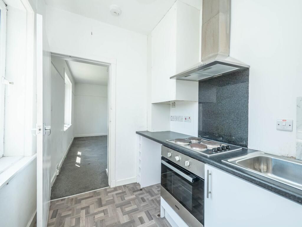 Accessed via a private main door, the accommodation comprises entrance vestibule with stairs leading to the first floor; hallway; spacious sitting room; fitted kitchen with ample wall and base units, coordinating splashback and integrated oven, hob and cooker hood; two double bedrooms; and a bathroom with three piece white suite which completes the accommodation.
