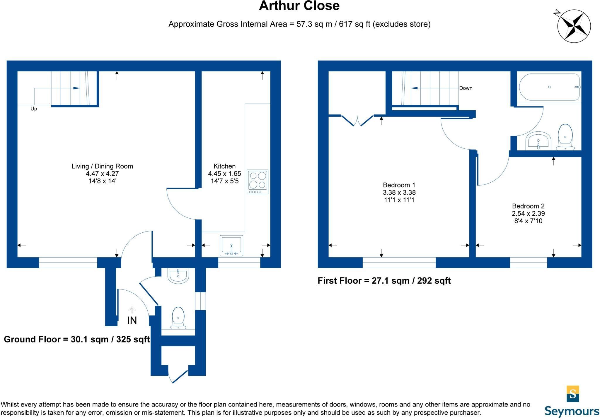 Internally, the property boasts a generous living dining room, separate kitchen and downstairs cloakroom. There are two excellent sized bedrooms with the family bathroom on the first floor.