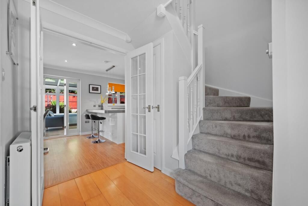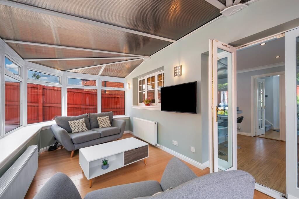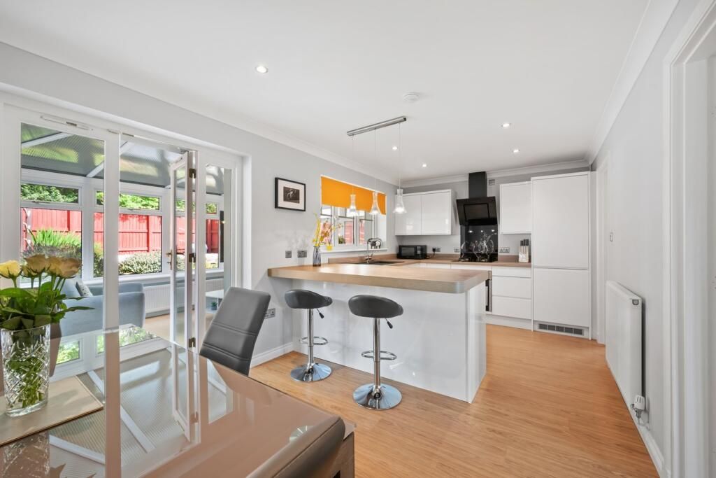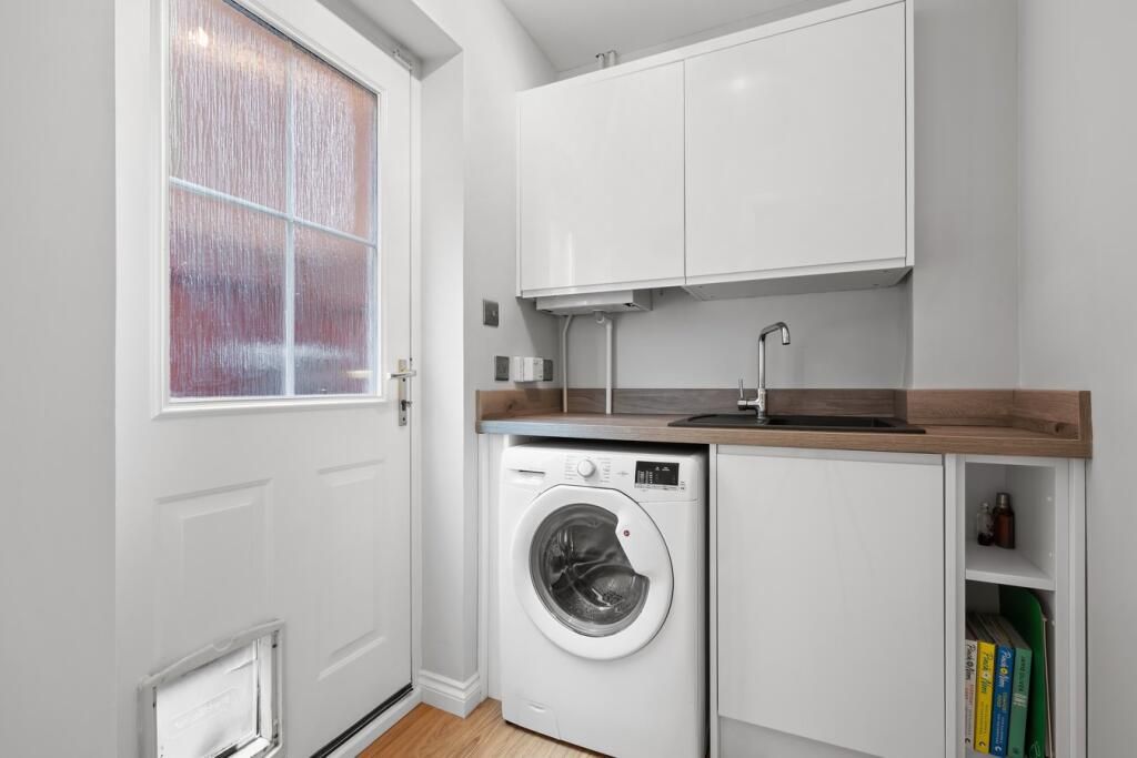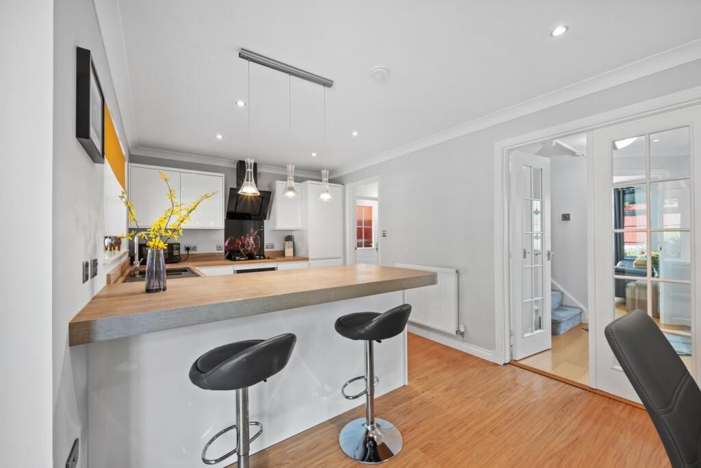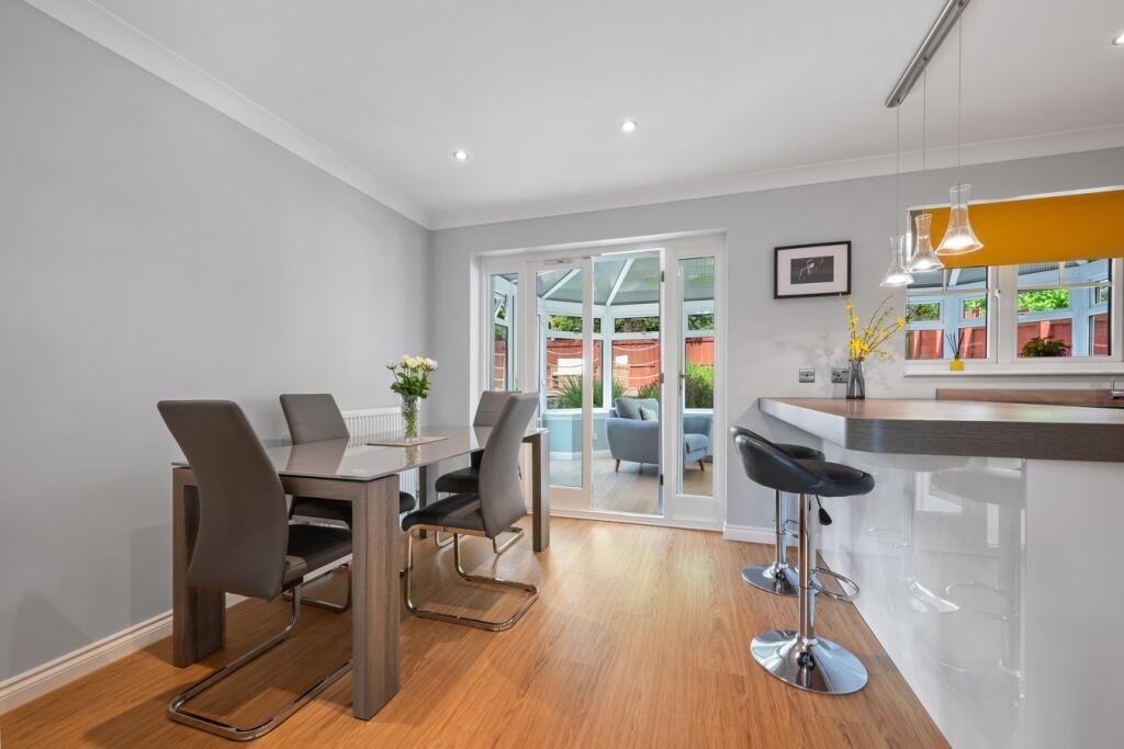 Well presented throughout with the accommodation comprising of entrance hall with WC and storage under the stairs. Living room to the front of the home and contemporary kitchen and dining room with a range of storage options, integrated appliances, breakfast bar and room for a formal dining table and chair set. Separate utility room to house additional white goods and access onto gardens. Conservatory situated off the kitchen leading to gardens.