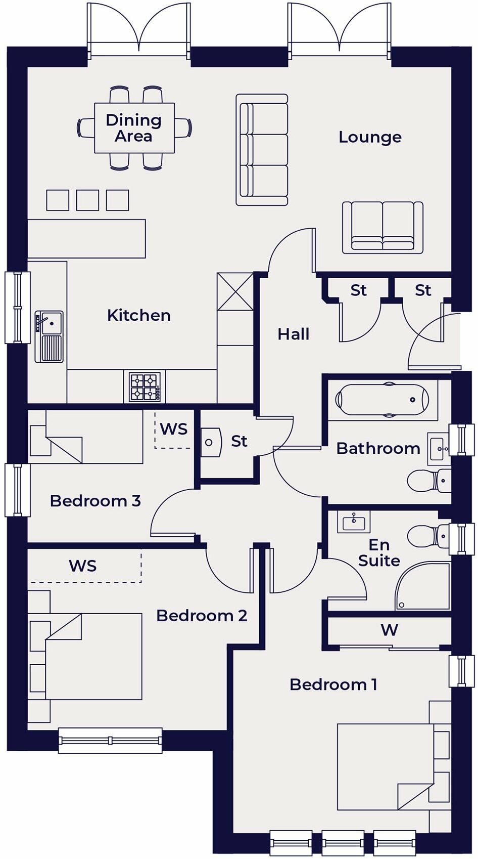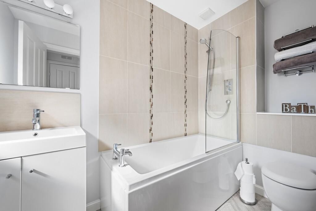 Primary bedroom with built in wardrobe and en suite shower room with WC and wash hand basin and two further bedrooms, with built in wardrobes within bedroom two. Family bathroom with three piece suite and shower over the bath.