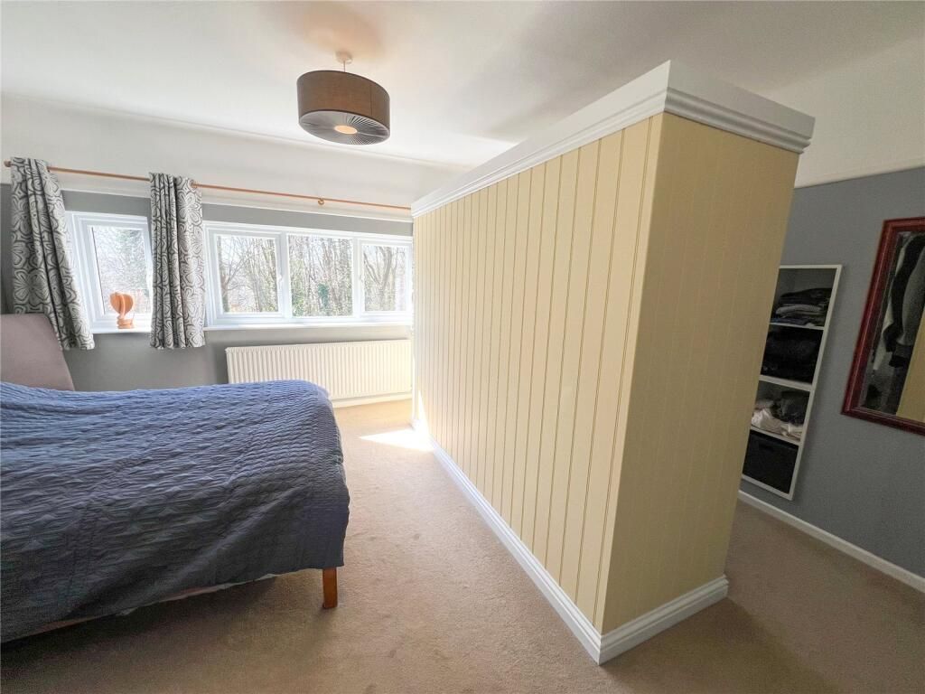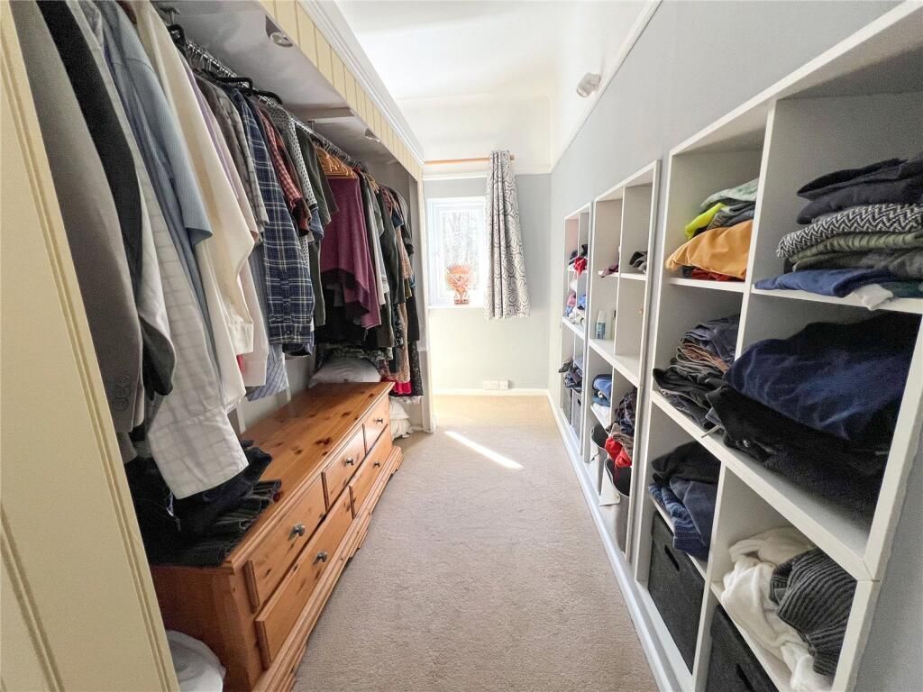 On the first floor landing there is a window providing natural light and the Principal Bedroom, of generous proportions has a large picture window overlooking the rear and has an extensive open fronted freestanding wardrobe with shelved storage opposite.