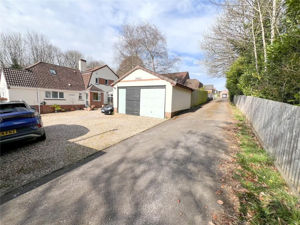 Kimmeridge is approached via a private shared drive with adjacent 3 properties which in turn leads to the extensive shingle stone driveway offering ample parking and the detached Garage with up and over door, pitch tiled roof, light and power.