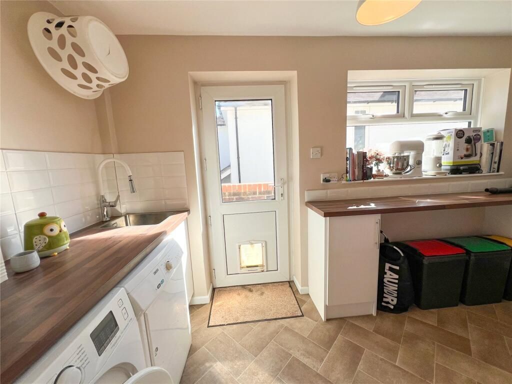 With a door leading to outside, the Utility Room has worktops with stainless steel inset sink, cupboard storage, plumbing for washing machine and space for tumble dryer. Wall mounted Vaillant gas fired boiler serves domestic hot water and central heating.