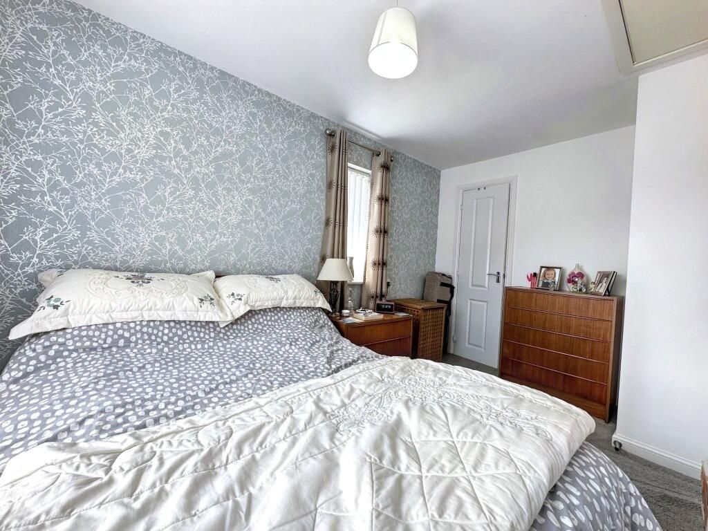 The home features a bright and stylish living room, a contemporary kitchen with integrated appliances, and a downstairs W.C. Upstairs, you ll find two generously sized bedrooms, both tastefully decorated, and a sleek family bathroom.