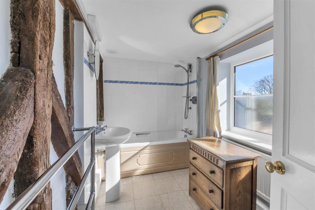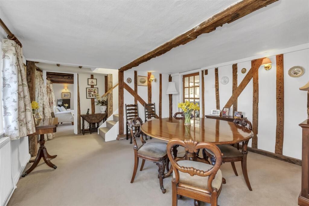 The beautifully presented accommodation currently in brief comprises a more recently added entrance porch leading to the dining room creating an ideal room for entertaining with exposed timbers and stairs off to first floor. The large study family room has two windows to front and leads through to the snug with door to a rear hall with doors to garden and cloakroom and a secondary staircase to the first floor. The sitting room is a charming dual aspect reception with exposed studwork and timbers, fireplace and French doors to the rear gardens. The well equipped kitchen breakfast room is fitted with an extensive range of units providing plenty of drawer and cupboard space with space for range oven. A separate utility room with a further sink, units and boiler, completes the ground floor accommodation.