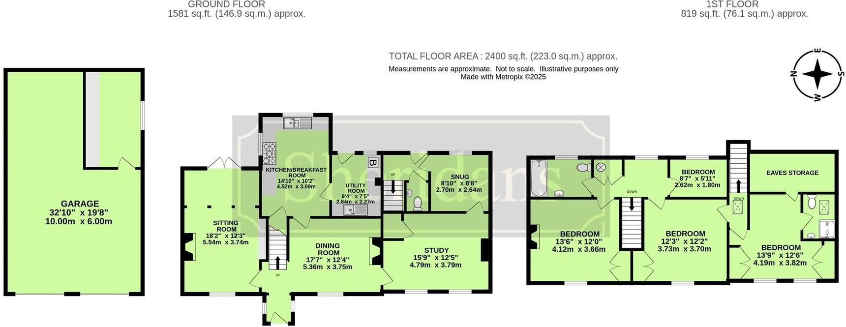 Two staircases lead to the first floor and to the four comfortable bedrooms, en suite shower and a separate family bathroom, completing the first floor accommodation.