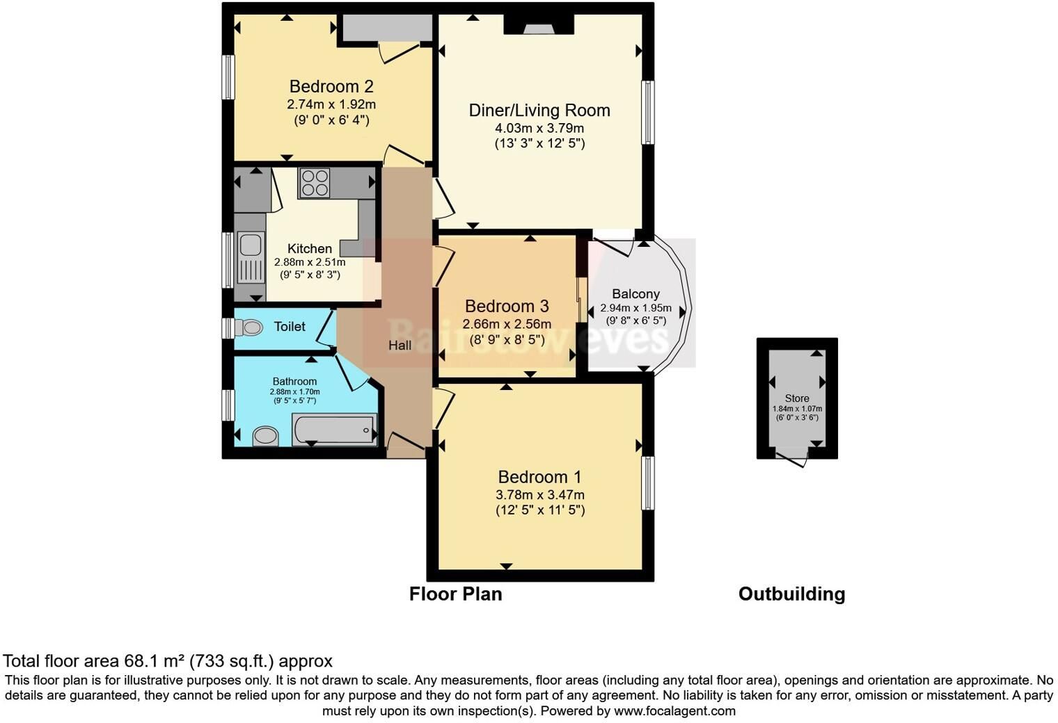 The flat benefits from a recently modernised bathroom, complemented by a separate WC, and a sleek, modern kitchen with ample storage. A private balcony provides a welcome outdoor retreat, while additional storage is available via secure lock up palm sheds.