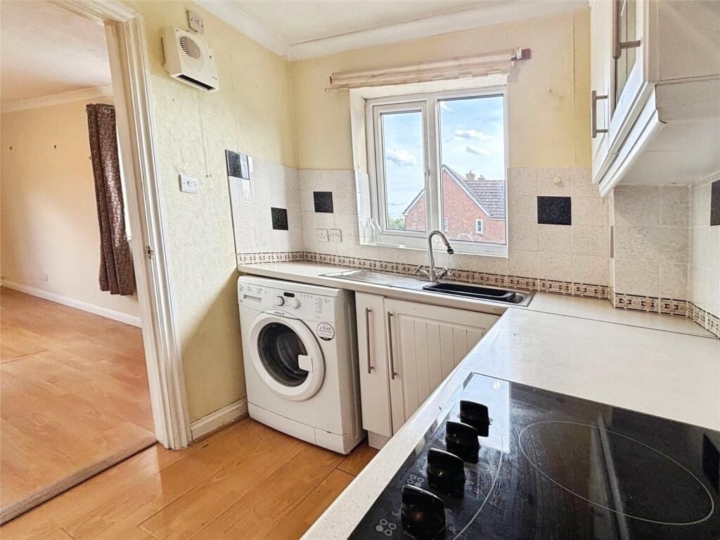Accommodation comprises entrance hall, living room, kitchen, two bedrooms, bathroom, communal gardens and allocated parking.