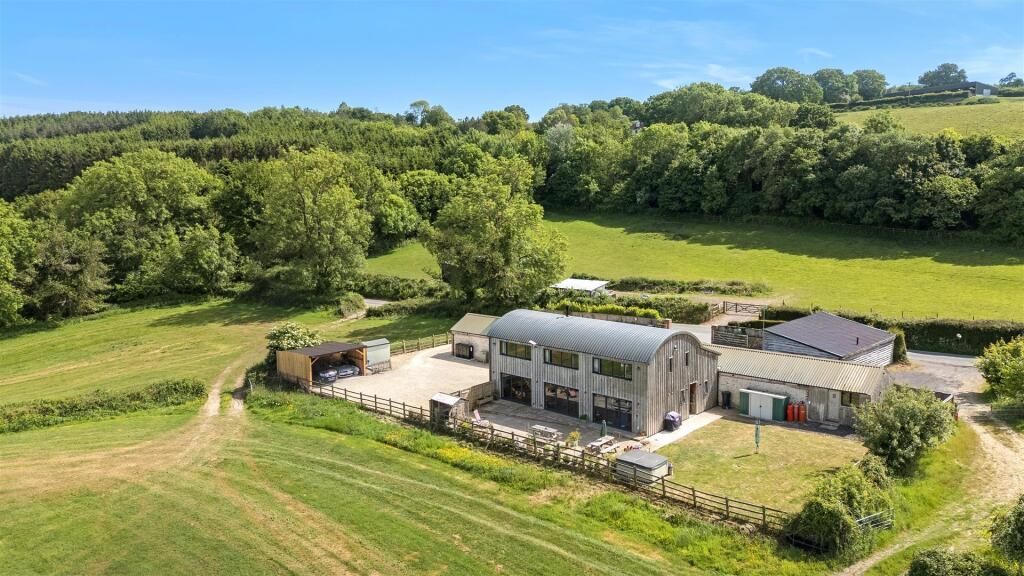 Description Shuteleigh is an exceptional detached house which was constructed in 2006, to an extremely high standard, with high quality fixtures and fittings throughout. The property enjoys stunning panoramic views over the countryside from all of its principal rooms and the property is particularly light and spacious blending traditional features such as the exposed timbers and impressive brick fireplace with heavy oak lintel, with stylish and modern feel.