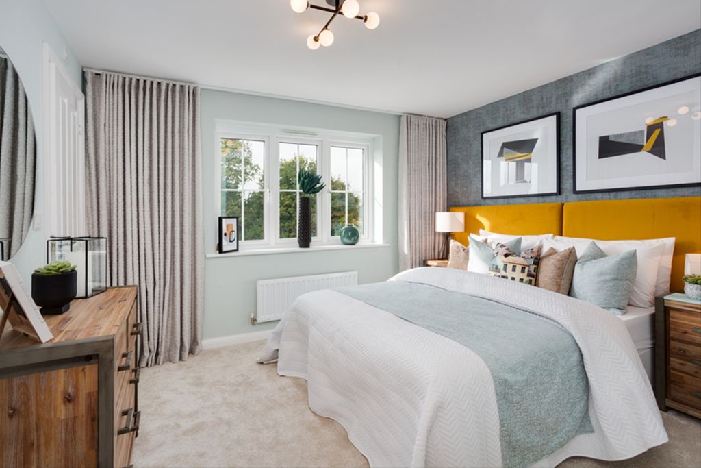 MASTER SUITE Spacious double bedroom with a double glazed window to the front enjoying far reaching views. Bespoke built in wardrobes. Separate walk in wardrobe fitted with shelving and hanging rails.