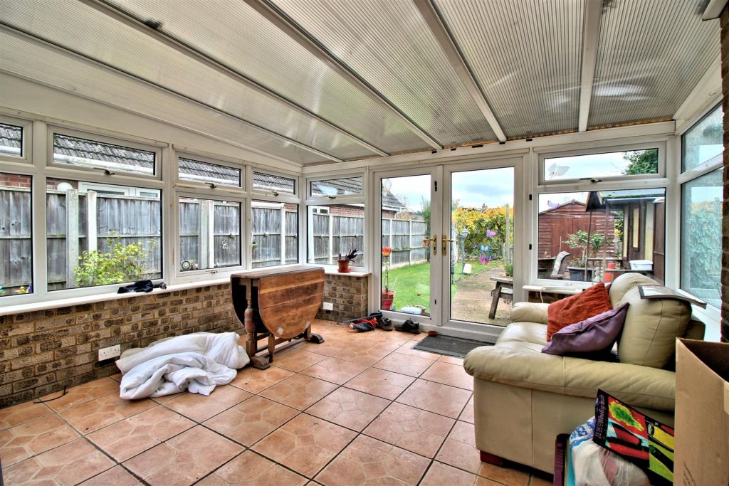 Front Of Property Concrete hardstanding driveway and brick path to the rear door which leads onto a conservatory. Small wooden framed porch with sliding doors.