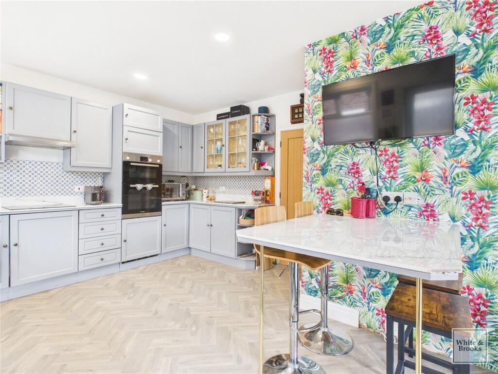 This home has an open plan kitchen and a light and airy lounge, both with French doors to the south facing garden. There s also a separate dining room and study. Upstairs you ll find an en suite main bedroom, three further doubles and the family bathroom. Comes with an EV charger, a garage and two parking spaces.